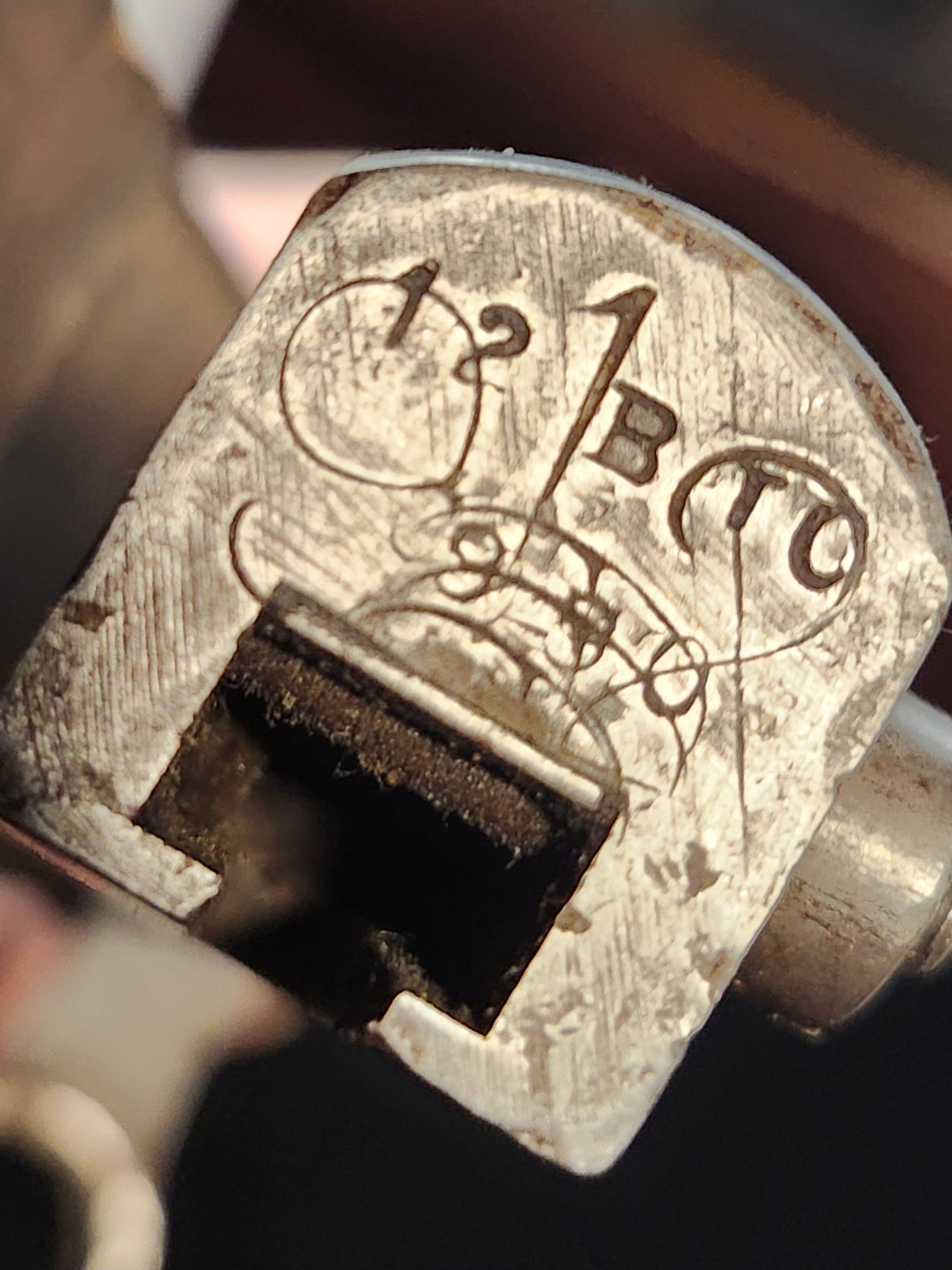 MK.1 Pattern Ross Bayonet dated April 1910 with factory blunt edge and light sharpening. Pummel marks indicate both the 30th Battalion and the 12th BTC. (Training Company)? Bluing has been polished away.