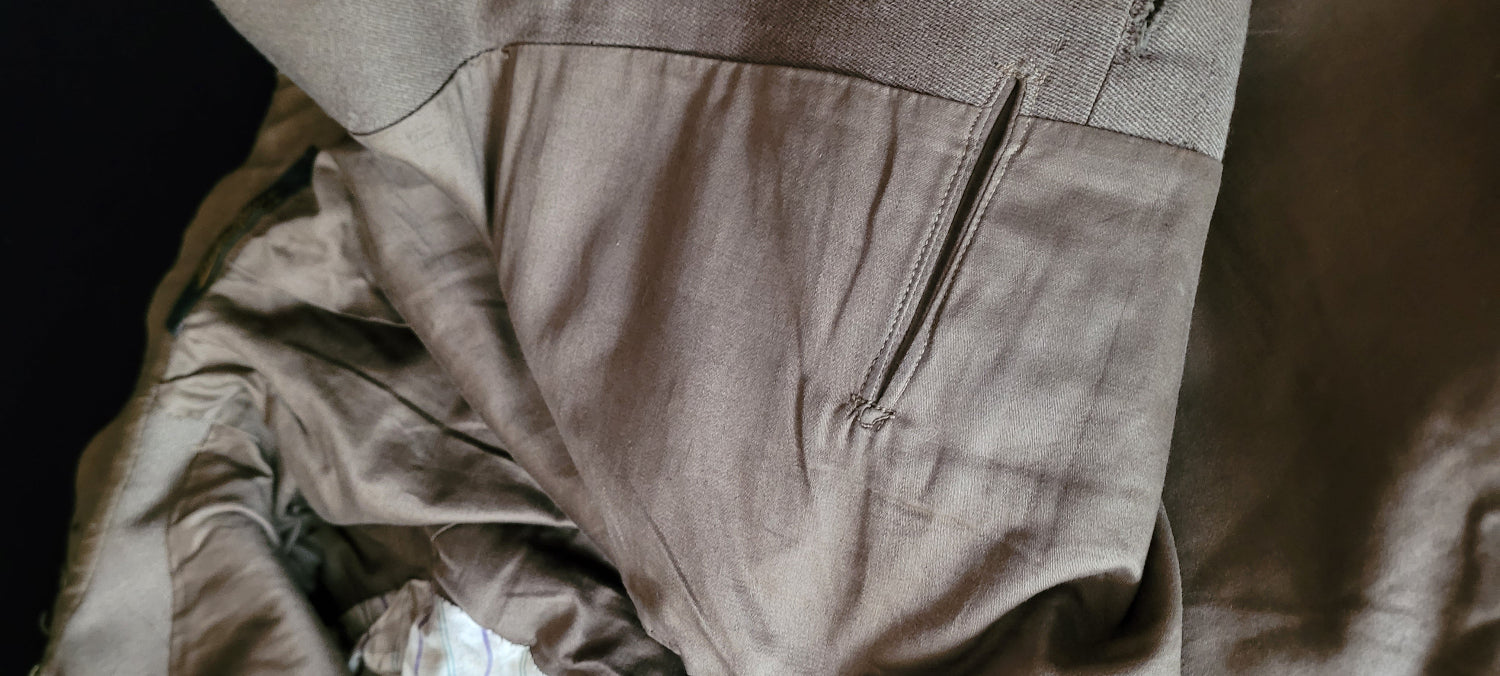 A seldom seen non-commissioned officer's tailored Canadian pattern seven button tunic named to a Sergeant Warne and dated 1916. Made of officer quality material, this private purchase, high collared tunic is fully lined and carries the label of De La Hay, Maidenhead (probably Hugh De La Hay, tailor). Original Canadian Army Medical Corps buttons and general service collar badges. Light mothing throughout.